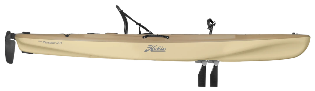 The 12-foot Mirage Passport takes you where you want to go with ease and world-class authority with the revolutionary MirageDrive with Glide Technology and Kick-Up Fins. When you’re not relaxing in the Passport’s breathable mesh seat, a wider cockpit area with EVA floor padding provides a stable platform for standing and stretching your legs or casting a lure. There’s plenty of real estate to stash equipment on the bow or stern cargo areas and more below deck access through the center 8” Twist-n-Seal hatch. Anglers will love our stealthy Bay Sand color and will be happy that the Passport 12 has a transducer cavity and scupper for simple install of your favorite fishfinder. All this on top of a Power-Pole® Micro bracket indent to mount your favorite shallow water anchor. Additional features include steering system with stowable rudder, two fishing rod holders, accessory tracks, and under seat and gunnel tackle storage.