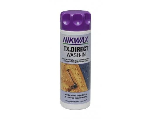 Nikwax TX-Direct Wash-In restores the durable water-repellent finish to all waterproof/breathable laminates, coatings and microfibers. NOTE: TX-Direct Wash-In is only to be used for front-loading washing machines or for hand washing.